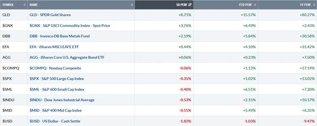 Commodities, however, were lively. Gold and silver soared to new record highs as investors presumably looked for safety with a hedge against inflation. Energy prices also moved higher with a notable surge in natural gas prices thanks to severe winter weather forecasts. Overall, commodities had a strong week.