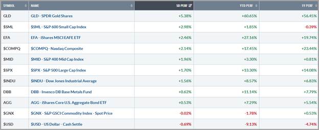 Equities opened strong Monday after the President softened his tariff stance toward China, sparking a broad relief rally. Momentum faded mid-week when Beijing launched investigations into U.S. shipping affiliates in Asia and regional bank write-offs at Zions and Western Alliance rattled confidence. Encouraging results from major tech and semiconductor firms, along with strong earnings from select regional banks on Friday, helped the market end the week on firmer footing.