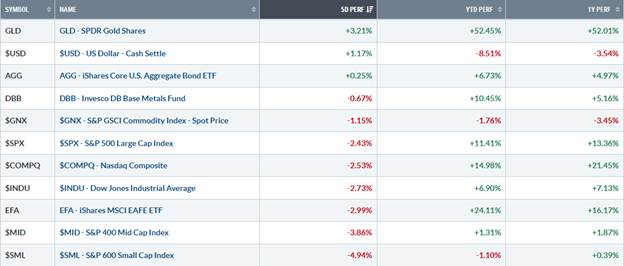 Volatility returned to Wall Street after stocks in the U.S. spent most of last week hovering near record highs before plunging Friday on renewed trade tensions. The S&P 500 fell more than -2.5% that day and nearly the same for the week, trimming its year-to-date gain rather significantly. All other major indices fared even worse with small caps lagging the most, down nearly -5%.