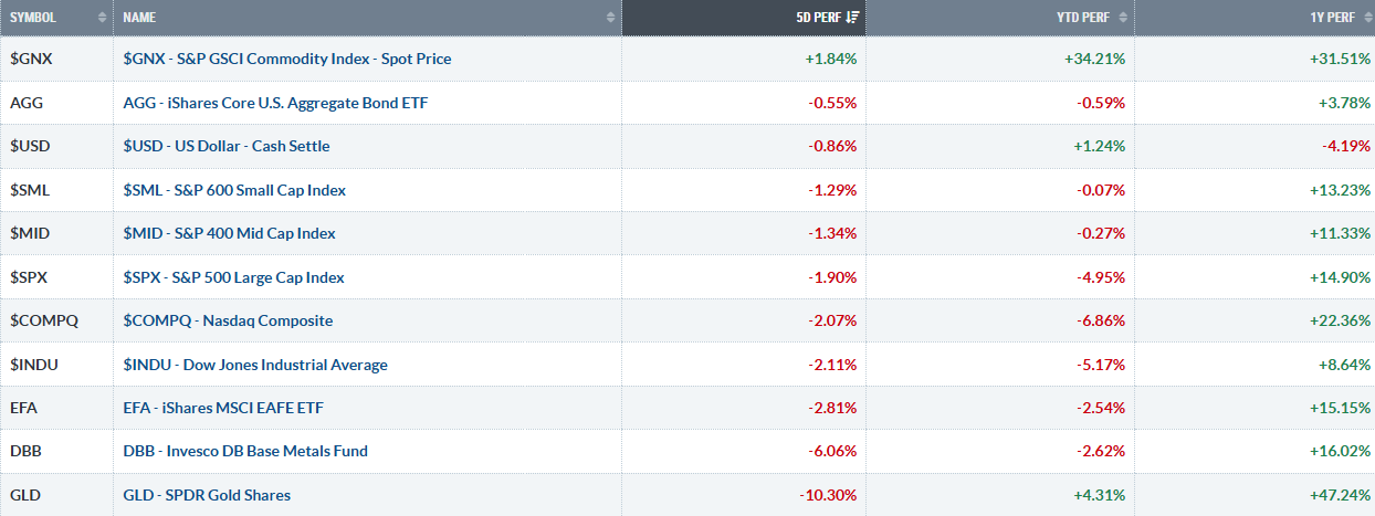 The S&P 500 fell nearly -2% last week and is now down close to -5% for the year.